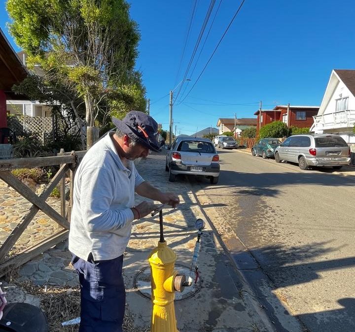 Nuestro equipo de control de calidad realizando toma de muestras de agua potable y control de presiones en la red en la localidad de Pichidangui y Los Molles